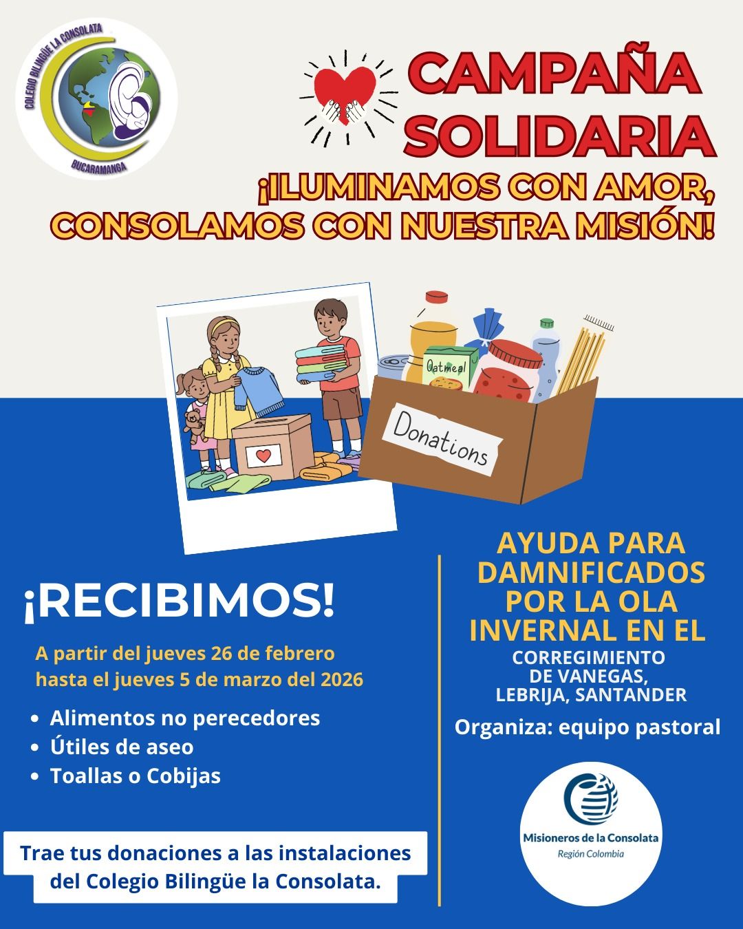 Como comunidad Allamaniana nos unimos para apoyar a las familias afectadas por la ola invernal en Vanegas (Lebrija, Santander).