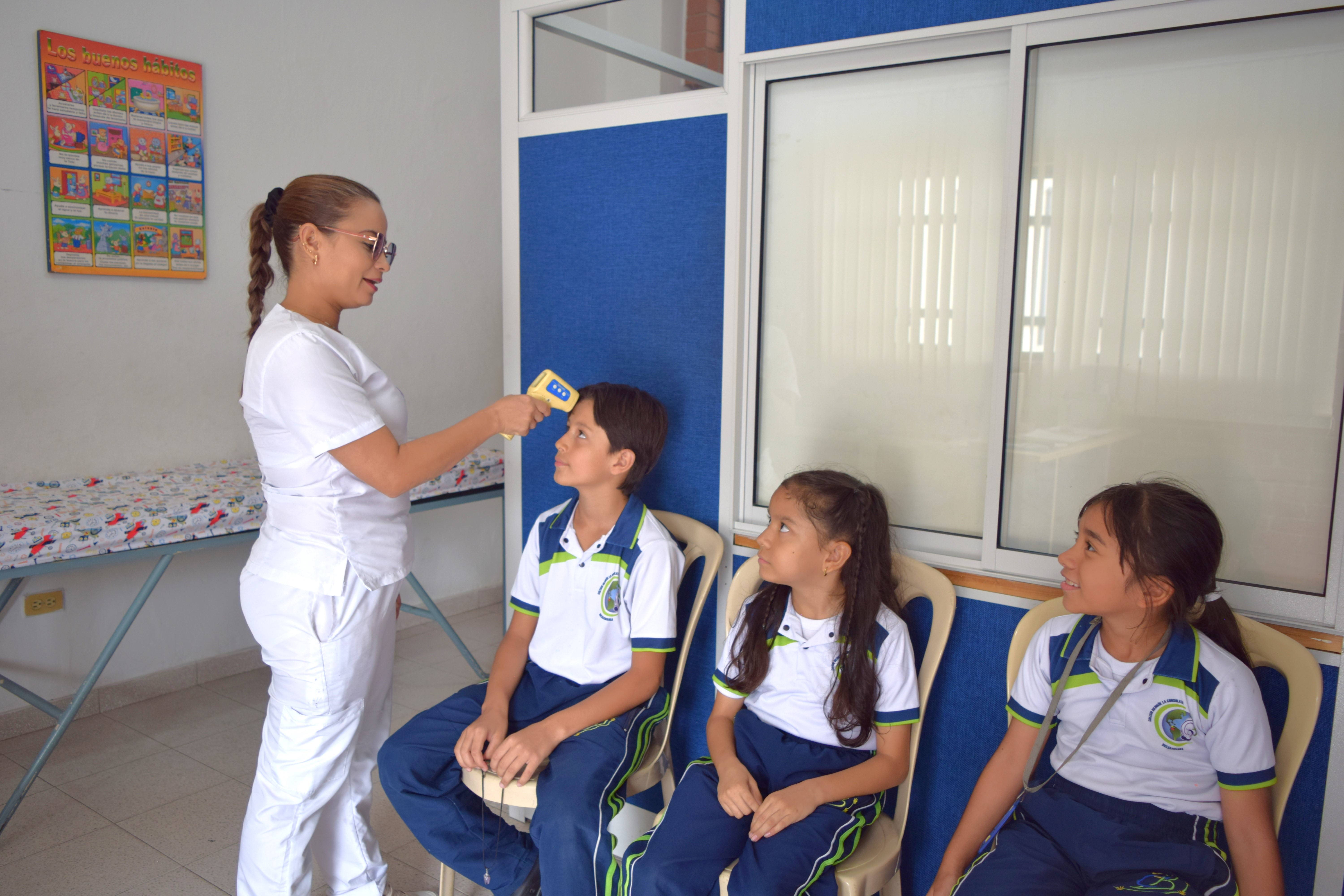 La enfermería en el ámbito escolar solo puede suministrar algún medicamento con previa autorización escrita por el padre, madre de familia y/o cuidador autorizado bajo prescripción médica, como lo reglamenta el articulo 65 del manual de convivencia.
